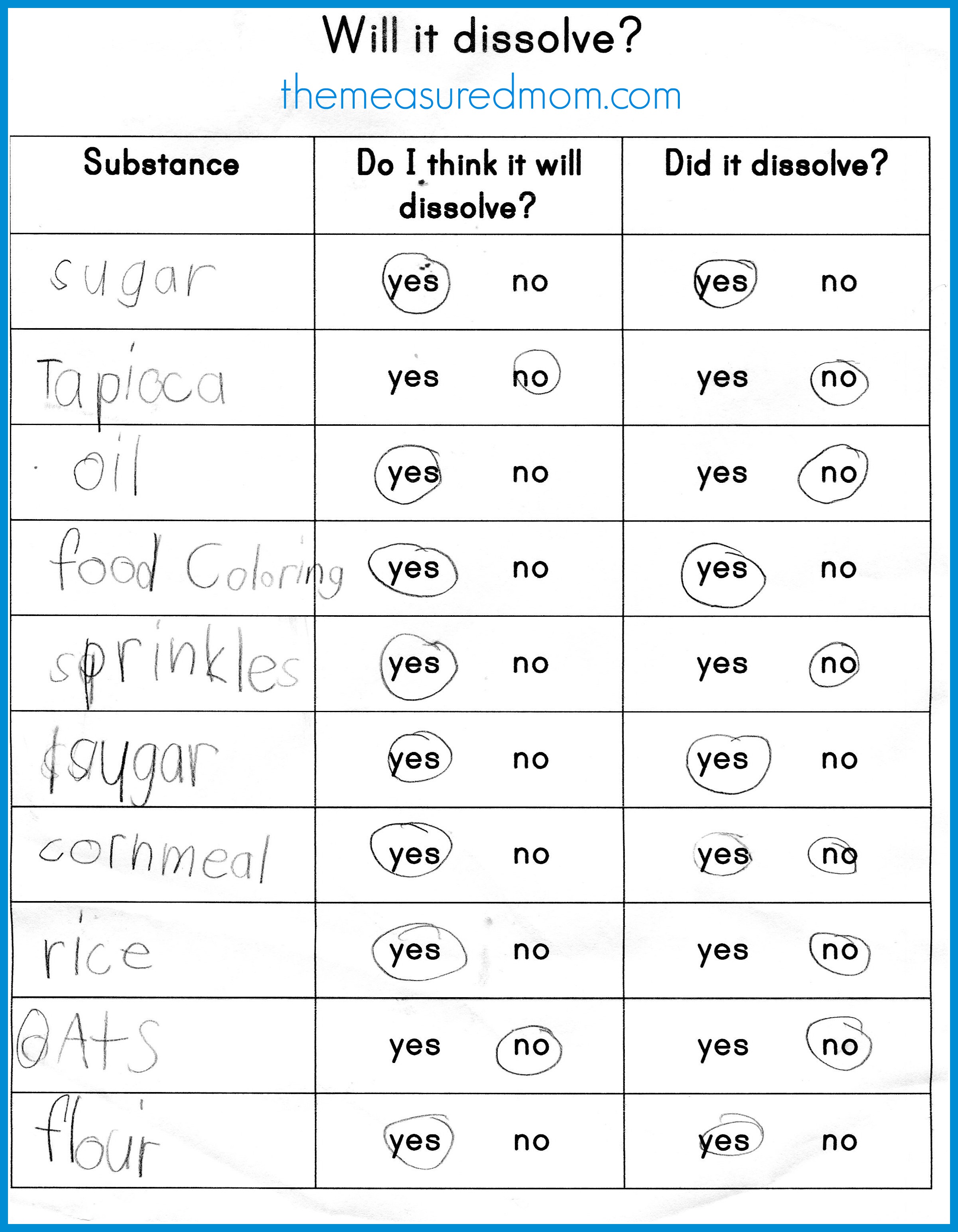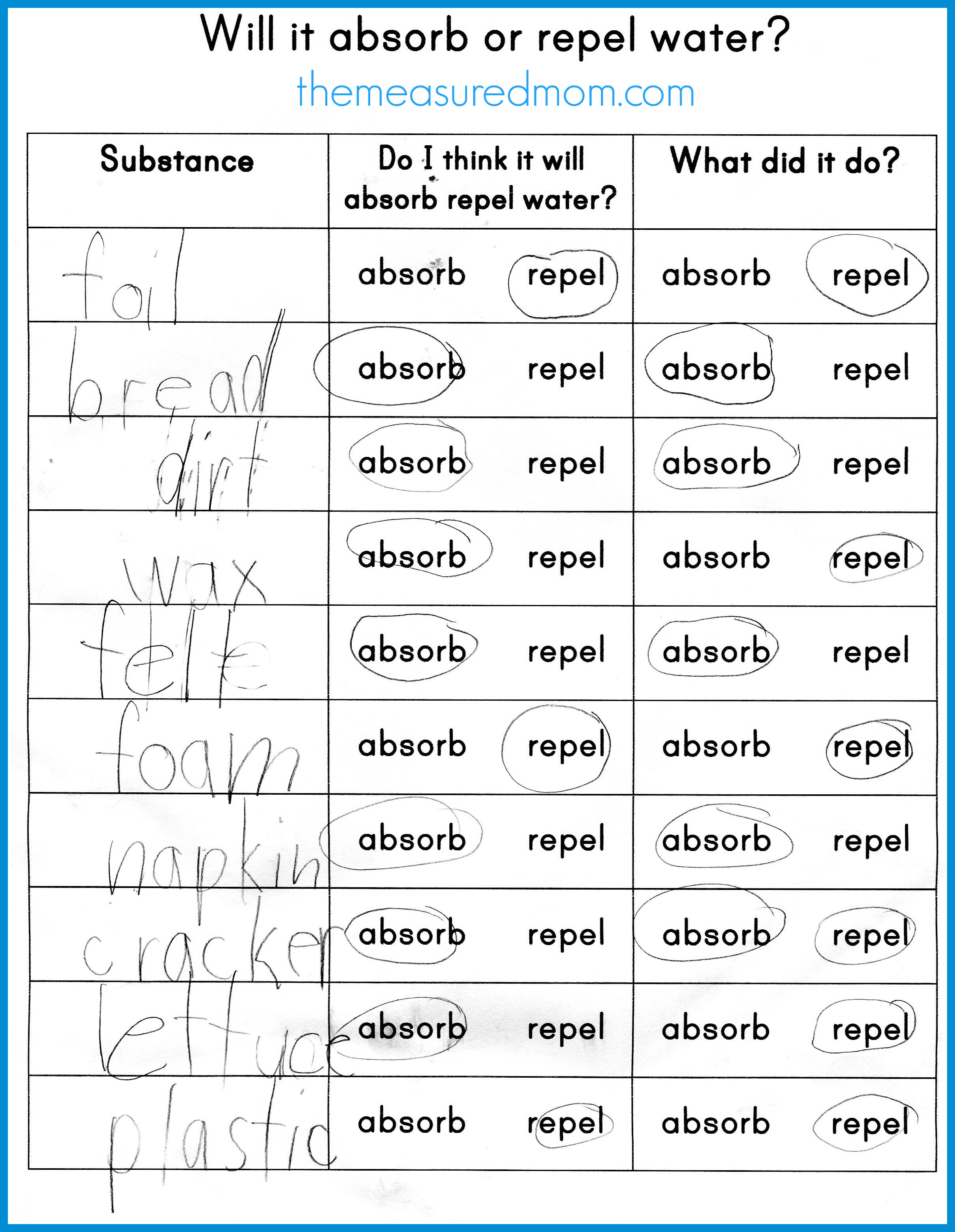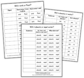 我们已经讲过沉或浮,但我喜欢你的“排斥或吸收”和你的“它会溶解吗?””活动。但更重要的是,我喜欢你的预测工作表!就太棒了!