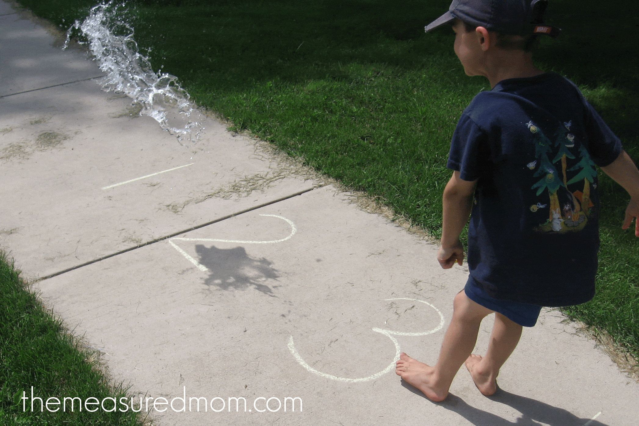 我在我们的人行道上写了数字1-10。我把三个气球递给了一个数字;他与他们匹配到人行道上,并猛击他们。我给了我的四个简单的补充问题。我的六个想要更加困难的添加问题和一些减法。我从一个人那里改编了这个想法没有时间兑换卡.